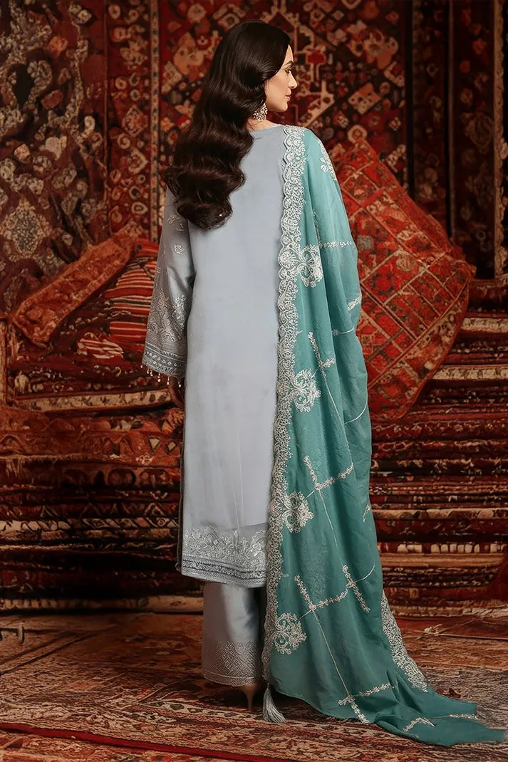 Embroidered pure bamber chiffon front embellished with handmade