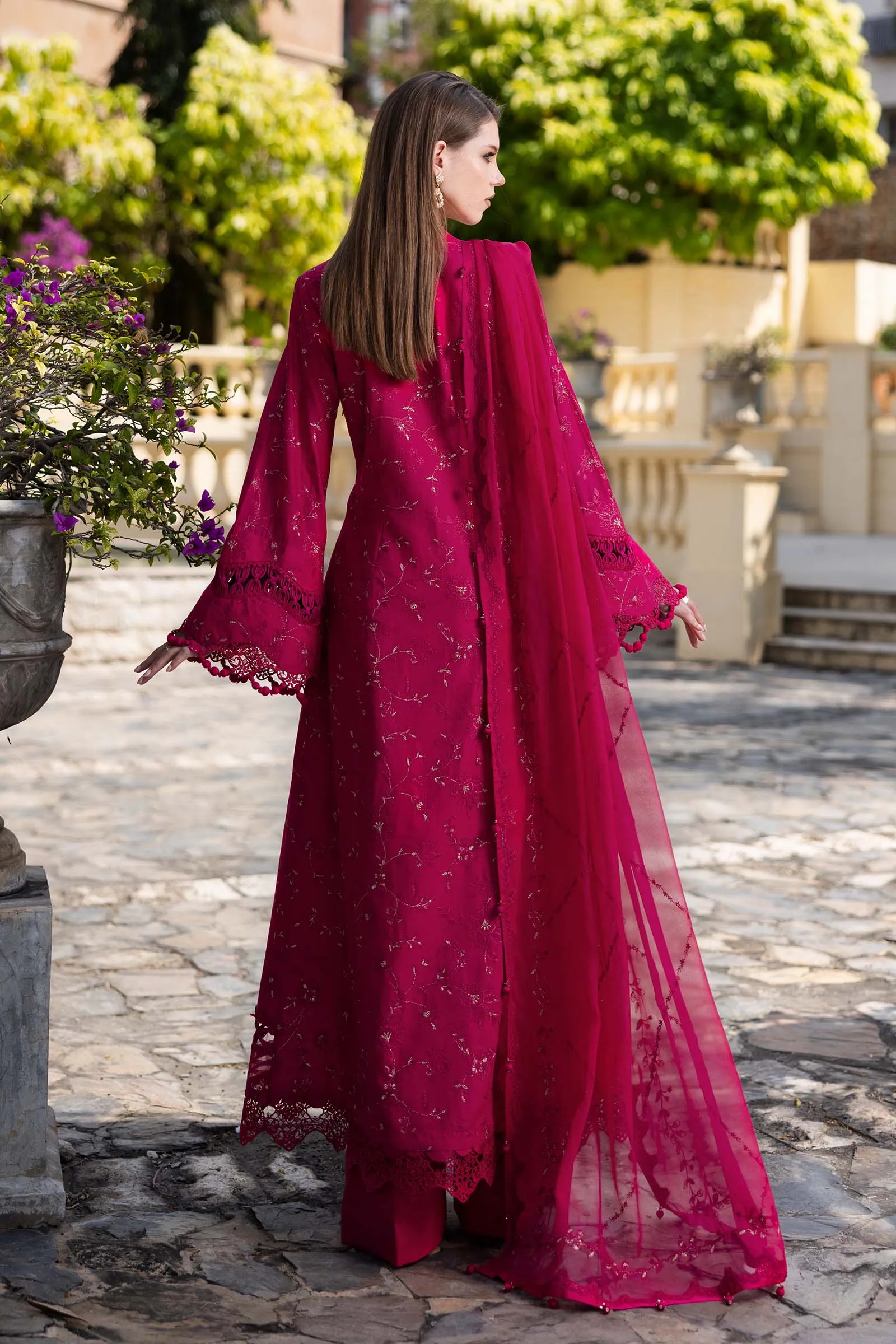 Dupatta: Self-on-Self Thread Embroidery With Badla Highlights & Scalloped Detailing
