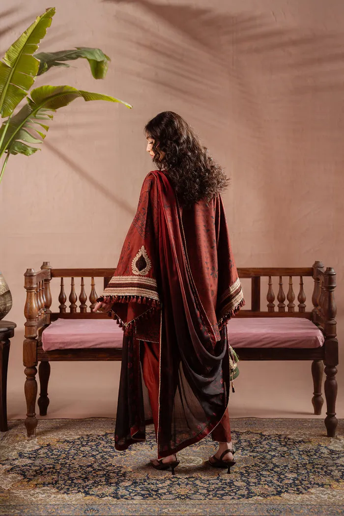 DESCRIPTION: This elegant ensemble is tailored from luxurious silk fabric, beautifully enhanced with embroidery and intricate resham detailing. A matching printed silk dupatta completes the look with effortless sophistication and grace.