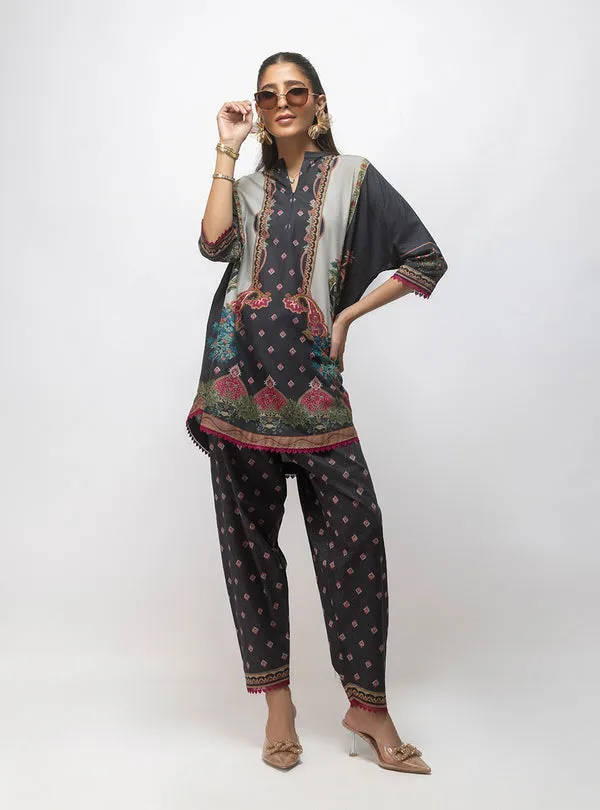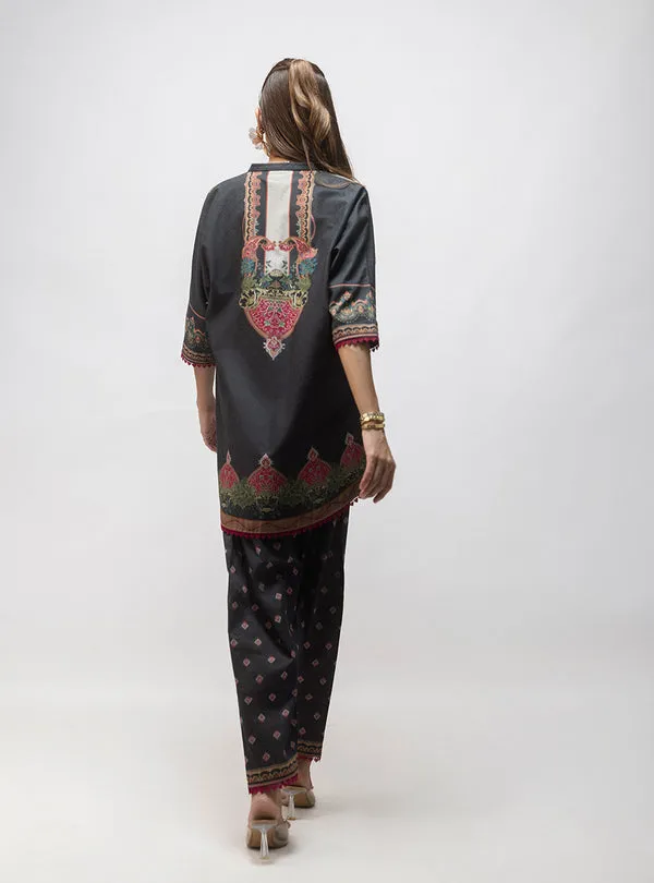 This is a straight-up statement fit. The Urban Haze set is for when you want to make an entrance. That bold, intricate print against the black? The flowy short shirt and matching shalwar are a perfect combo of comfortable and cool, making this set your go-to for effortless style.